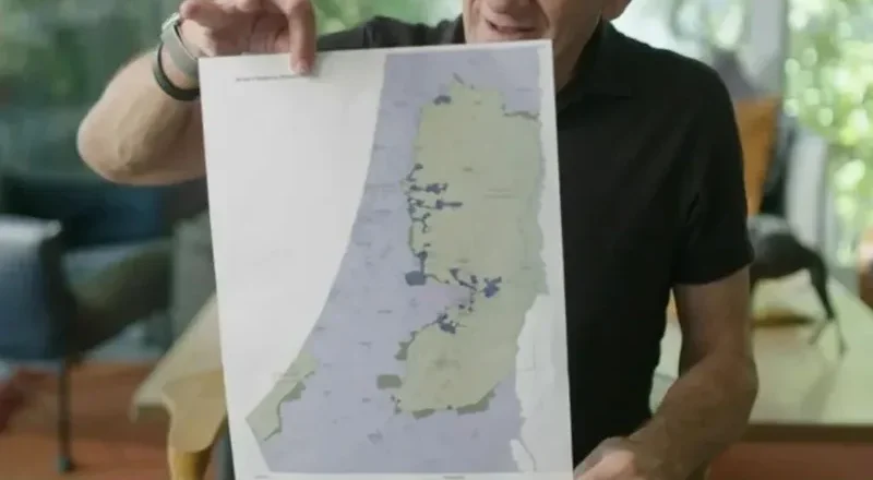 ويقول أولمرت في فيلم وثائقي بعنوان “إسرائيل والفلسطينيون: الطريق إلى السابع من أكتوبر”، الذي يبث على بي بي سي اليوم: “هذه هي المرة الأولى التي أعرض فيها هذه الخريطة على وسائل الإعلام”.