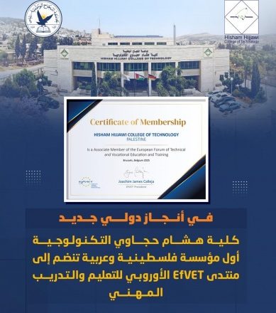 أول مؤسسة فلسطينية- كلية هشام حجاوي التكنولوجية تنضم لمنتدى “EfVET” الأوروبي