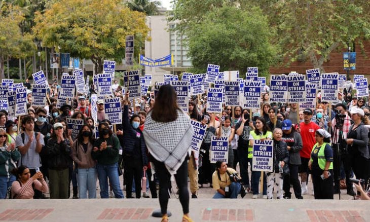 كاليفورنيا- “القدس العربي”: أعلن اتحاد الأكاديميين بجامعة كاليفورنيا، الثلاثاء، توسيع إضرابه المستمر ليشمل جامعة “كاليفورنيا في لوس أنجلوس” وجامعة “كاليفورنيا في ديفيس”، ليصل إجمالي عدد المضربين إلى 12000.