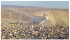 إلتقاط صور لذئب نادر ذو فرو أبيض في صحراء النقب