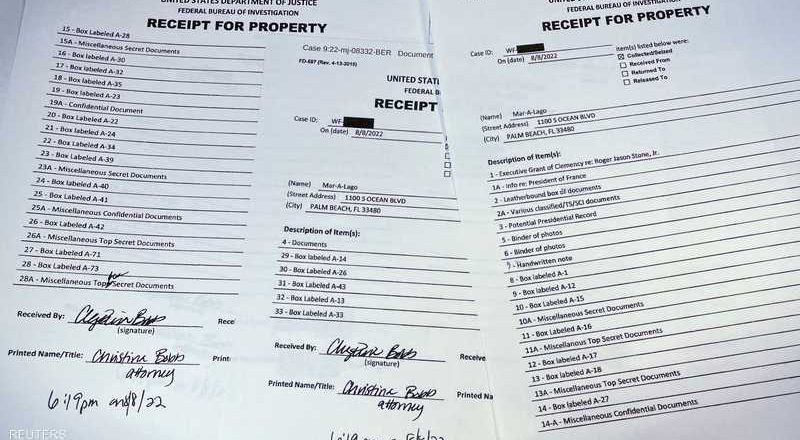 استعاد الأرشيف الوطني الأميركي أكثر مائة وثيقة مصنفة كمستندات سرية وتضم ما يزيد مجموعه على سبعمائة صفحة، من دفعة أولية تشمل خمسة عشر صندوقا تم استردادها من مار ايه- لاغو في وقت سابق من العام الجاري، حسبما أفادت مخاطبة حكومية عامة جديدة مع فريق ترامب القانوني.