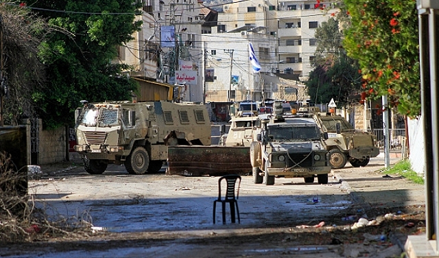 في محافظة جنين، اقتحمت قوات الاحتلال ترافقها آليات وجرافات عسكرية مدينة جنين ومخيمها من كافة مداخلها خاصة المدخل الغربي من المخيم وشارع السكة في جنين.
