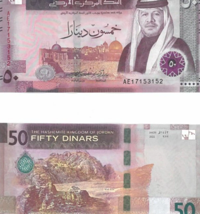 نشر البنك المركزي الأردني، يوم السبت، على موقعه الإلكتروني صوراً لباقي فئات أوراق النقد الأردني/الإصدار الخامس (خمسون ديناراً، عشرون ديناراً، عشرة دنانير وخمسة دنانير).