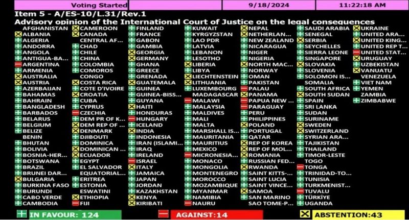 وأكد الوزير أن دعم هذا القرار هو خطوة أولى نحو إنهاء إفلات إسرائيل من العقاب، مشددًا على أن “إسرائيل لا يمكنها الاستمرار في ارتكاب جرائم الحرب والاحتلال العنصري بدون ردع دولي. المجتمع الدولي اليوم قال بصوت عالٍ وواضح إن الوقت قد حان لإنهاء هذا الاحتلال”.