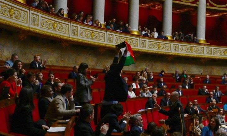 النائب عن حزب فرنسا الأبية، سيباستيان ديلوغو (من مواليد 1987)، والده من أصول أرمينية وإيطالية، ووالدته من أصول جزائرية وإسبانية، كان رفع العلم الفلسطيني دعما للفلسطينيين خلال سؤال للحكومة في الجمعية الوطنية حول الوضع في قطاع غزة، قبل أسبوع.