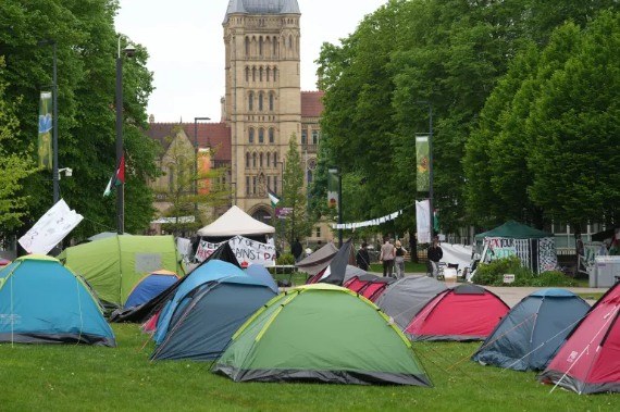 وقد انضم طلاب جامعة يورك (وسط إنجلترا) إلى الحراك الطلابي المتنامي، ونصب طلاب وموظفون بالجامعة خيامهم في حرمها، معتبرين أن إدارة الجامعة لا تزال تقدم دعما غير مباشر لإسرائيل، رغم إعلانها أنها ستسحب استثماراتها من شركات تصنع وتبيع أسلحة لها.
