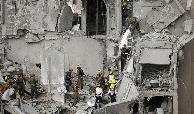 دمار هائل بموقع سقوط صاروخ في بئر السبع، الثلاثاء (Getty Images)