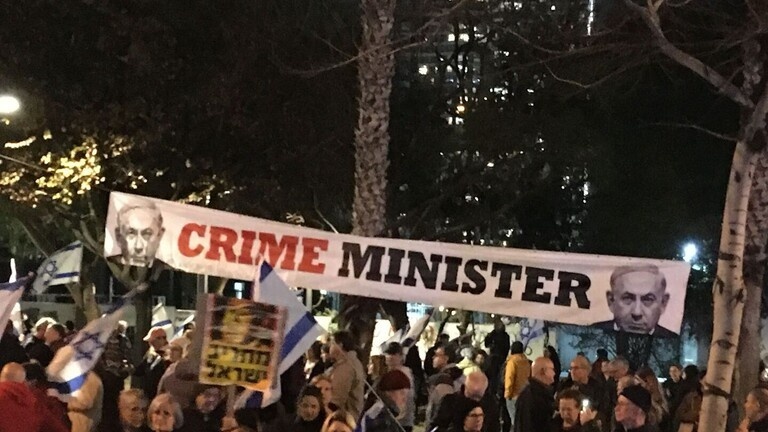 وردد المتظاهرون شعارات مؤيدة لإجراء انتخابات مبكرة ومطالبة باستقالة رئيس الوزراء الإسرائيلي بنيامين نتنياهو.