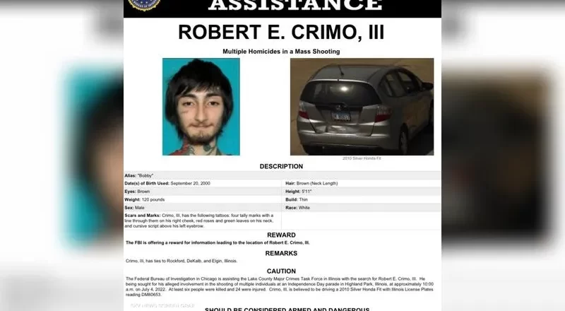 وبحسب المعلومات الأولية فإن الشخص يدعى روبرت إي. كريمو، ويبلغ من العمر 22 عامًا ويعتقد أنه يقود سيارة هيونداي فضية 2010.