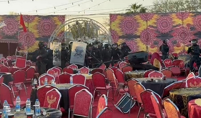 وأضاف “يبدو أن نية الشرطة كانت قتل أحدهم في حال أبدى أي ردة فعل، بعد ذلك توجهت إلى قسم النساء في الحفل وتعاملت معهن بعنف وأقدمت على تخريب المحتويات والممتلكات، وأجبرت الجميع على مغادرة المكان ما أسفر عن 3 إصابات على الأقل واعتقال والد العريس وشاب آخر”.