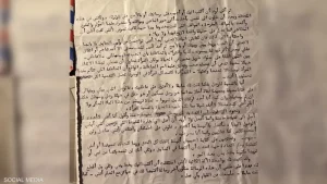 وجرى العثور على الرسالة في أحد قصور بشار الأسد، بعد اقتحامها من طرف الفصائل المسلحة.
