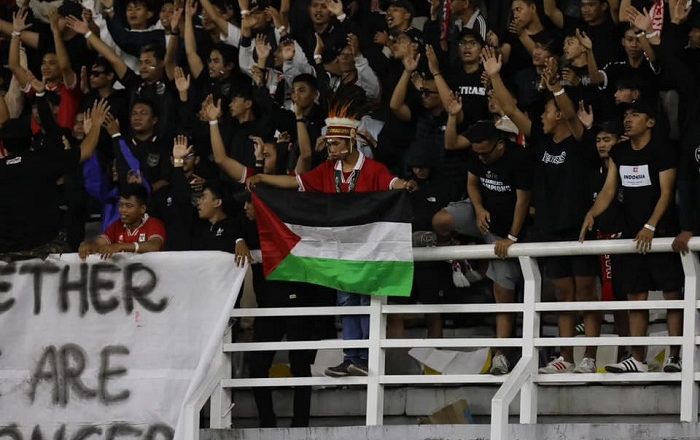 وامتلأت مدرجات الاستاد بالجمهور الإندونيسي، الذي شجّع المنتخبين على مدار شوطي المباراة، ورفعوا العلم الفلسطيني. في حين، جاءت المباراة متوسطة المستوى، مع أفضلية للمنتخب المضيف، الذي أهدر لاعبوه عدة فرص محققة للتسجيل في الشوط الأول.