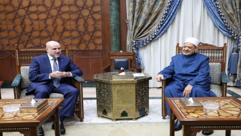 الهباش يطلع شيخ الأزهر على تحركات الرئيس والقيادة لوقف العدوان على شعبنا