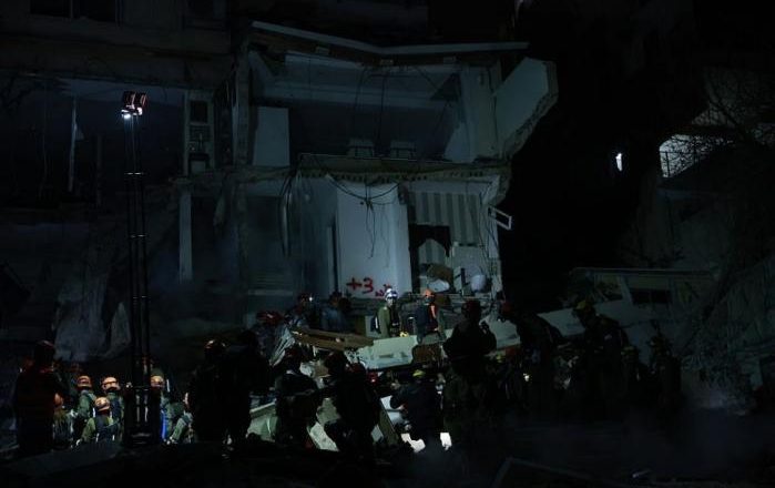 وأظهرت لقطات العشرات من عمال الإطفاء والإنقاذ وهم يعملون على أضواء المصابيح لإزالة حطام المبنى المدمر في محاولة للوصول إلى المفقودين.