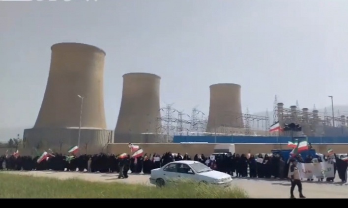 وتجع المئات من الإيرانيين عند إحدى محطات توليد الكهرباء في إيران. يأتي ذلك تزامناً مع الأنباء عن بدء استهداف البنية التحتية الوطنية وسكك الحديد.