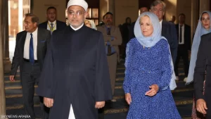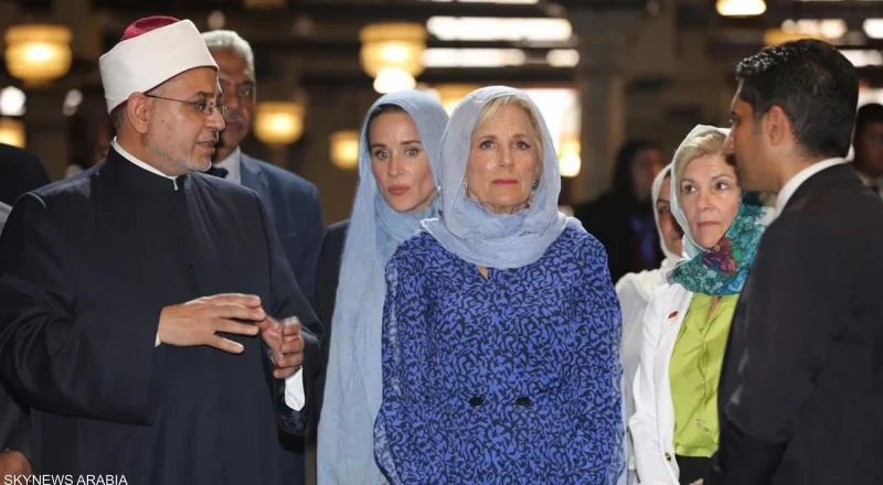 واستمعت السيدة الأولى لشرح توضيحي من رئيس جامعة الأزهر، الدكتور سلامة داود، حول تاريخ الجامع، وما يضمه من أروقة.