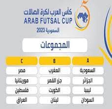 وضمت المجموعة الأولى: منتخبات السعودية والجزائر وليبيا والسودان، والمجموعة الثانية: المغرب وجزر القمر والكويت ولبنان، والثالثة منتخبات مصر وموريتانيا وفلسطين والعراق، وستقام منافساتها في صالة وزارة الرياضة في استاد الأمير عبد الله الفيصل بمحافظة جدة.