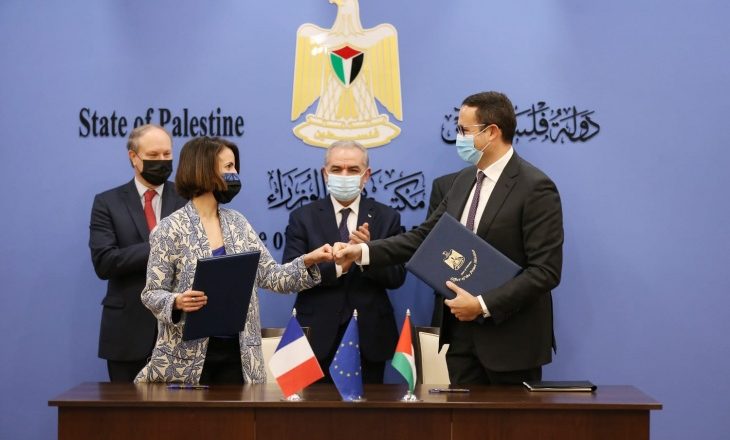 وجرى توقيع الاتفاقية يوم الأربعاء الماضي في مكتب دولة رئيس الوزراء د. محمد اشتية ضمن مجموعة اتفاقيات جرى توقيعها بين عدد من البنوك الفلسطينية والاتحاد الأوروبي، بهدف تعزيز الاقتصاد وتشجيع الاستثمار في الطاقة البديلة والمشاريع المستدامة ودعم المنشآت التي تأثرت جراء جائحة كورونا.