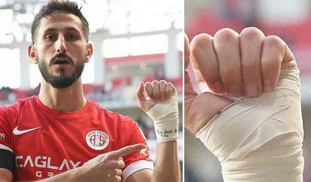 وعقب تسجيله هدفا خلال مباراة جرت الأحد، كشف اللاعب رسالة كتبها على ضمادة لفّ بها معصمه، جاء فيها “100 يوم. 07/10”.