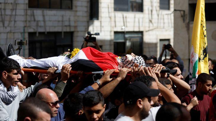 وانطلق المشيعون بالجنازة من مستشفى رفيديا، إلى ميدان الشهداء وسط المدينة، ثم إلى مخيم عسكر، حيث ألقيت نظرة الوداع الأخيرة عليه بمنزل عائلته، قبل أن يصلى عليه ويوارى الثرى بمقبرة المخيم.