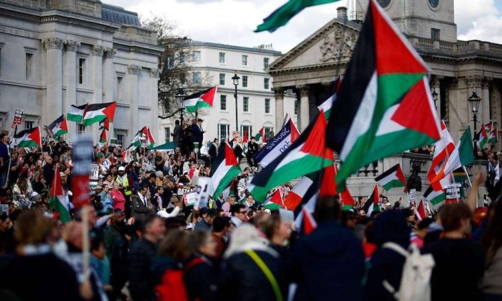 وقال بن جمال مدير حملة التضامن مع فلسطين (Palestine Solidarity Campaign) وأحد منظّمي التظاهرة لشبكة “سكاي نيوز”، “ندعو إلى وقف إطلاق نار فوري بهدف وقف ما قضت أعلى هيئة قضائية في العالم (محكمة العدل الدولية) بأنّه قد يكون إبادة جماعية”.