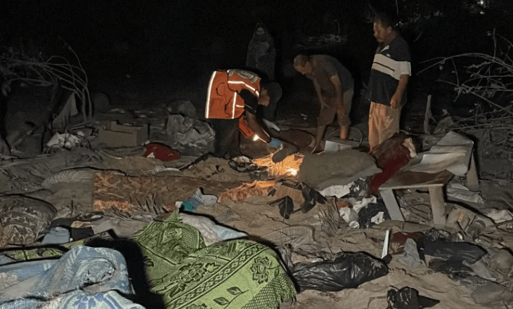 وذكر أن الحصيلة الأولية للضحايا تجاوزت 60 شخصًا بين قتيل وجريح، مشددًا على أن استخدام هذا النوع من القنابل الأميركية ذات الأثر التدميري الواسع في منطقة مليئة بالخيام والنازحين مؤشر على نية الجيش الإسرائيلي قتل أكبر عدد من المدنيين، علمًا بأنه لم يسبق القصف أي إنذارات إخلاء.