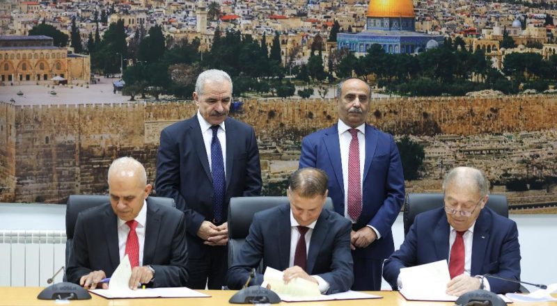 وقعت الحكومة وائتلاف شركات من القطاع الخاص، اليوم الأربعاء، عقد إنشاء صوامع للقمح في كل من الخليل ورام الله، بطاقة تخزينية قدرها 80 ألف طن، وهو مشروع قال رئيس الوزراء محمد اشتية “إنه في صلب الإستراتيجية الفلسطينية للانفكاك التدريجي عن اقتصاد الاحتلال”.