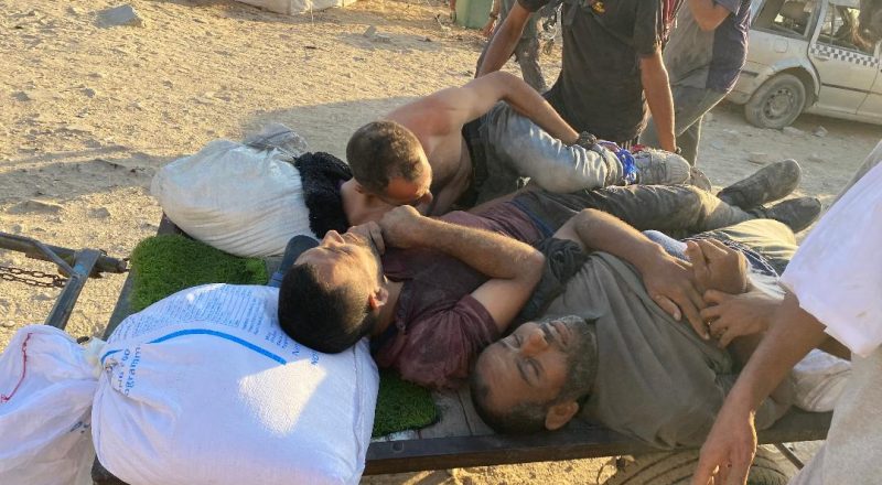 في مستشفى حمد كان الطفل نضال عزيز، (12 عاما)، بجانب عمه الملقى على متن “توكتوك” بانتظار من يمد يد العون، وأفواج من الجرحى والشهداء يصلون بشكل يفوق طاقة الطاقم الطبي الذي يتضور جوعا.
