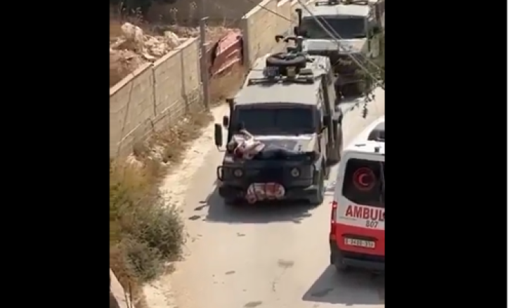 جيش الاحتلال يقيد فلسطينيا مصابا بمركبة ويستخدمه درعا بشريا في جنين