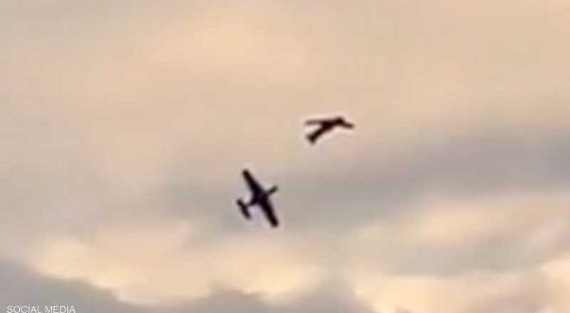 ورصد شريط فيديو تحليق الطائرتين بجانب بعضهما البعض، قبل أن تهوي إحداهما قليلا، فيما بدا أنها حركة استعراض عادية.