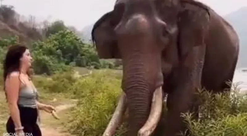 وأظهرت لقطات فيديو أن المرأة قرّبت قرن الموز من فم الفيل العملاق، وكانت الابتسامة تعلو وجهها دون أن تدري ماذا ينتظرها، وسُمعت وهي تقول: “ما أروعه”.