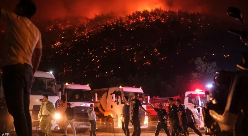 وأعلن وزير الزراعة والغابات التركي إبراهيم يوماكلي أنه “تم إجلاء 3,515 من مواطنينا بالإجمال ونقلهم إلى أماكن آمنة”، مضيفا أن 2,300 من رجال الإطفاء وعمال الإنقاذ شاركوا في مكافحة النيران الأحد وسط رياح عاتية.