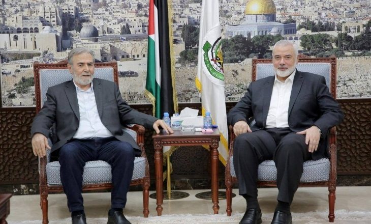 بحث رئيس المكتب السياسي لحركة حماس إسماعيل هنية، الاثنين، مع الأمين العام لحركة الجهاد الإسلامي في فلسطين زياد النخالة، جهود وقف الحرب الإسرائيلية على قطاع غزة.