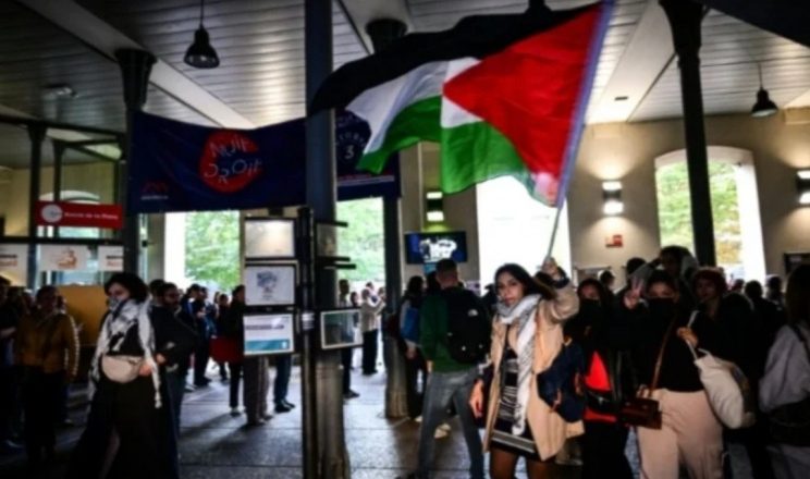 رفضاً للموقف الرسمي الفرنسي الداعم للإبادة الجماعية الإسرائيلية في غزة، قام طلاب من “جامعة ليون 3” بإغلاق مداخل المؤسسة وتغطية الجامعة بشعارات مدافعة عن غزة وفلسطين، وذلك خلال زيارة رئيسة الجمعية الوطنية الفرنسية، يائيل برون – بيفيت، إلى هذا الصرح الأكاديمي.