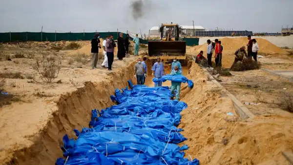دُفنت، اليوم الثلاثاء، جثامين 100 مواطن استشهدوا خلال عدوان الاحتلال المتواصل منذ السابع من تشرين الأول/ اكتوبر الماضي، بمقبرة جماعية، في مدينة رفح، كان الاحتلال قد سرقها من مناطق متفرقة من قطاع غزة.