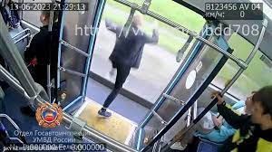 وتم التقاط الفيديو بكاميرات مراقبة مثبتة في الحافلة، التي كانت تسير في مدينة أرخانجيلسك شمال غربي روسيا.