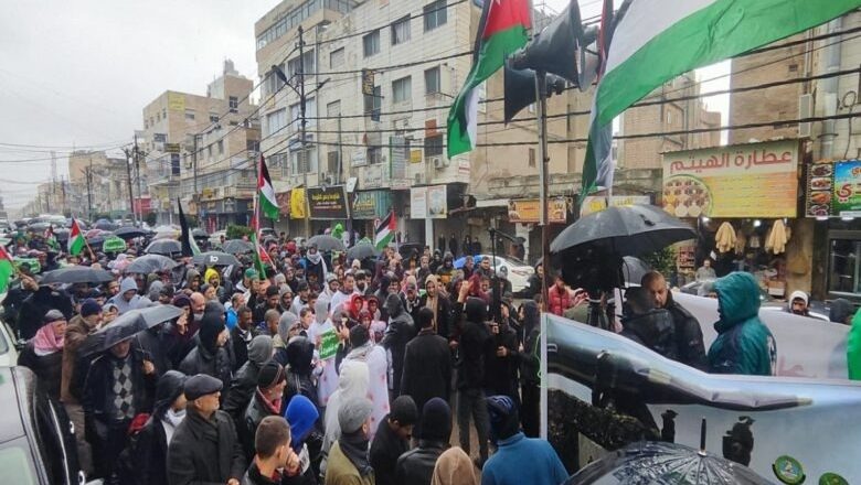 رغم الأمطار.. مسيرة في العاصمة الأردنية دعما لغزة