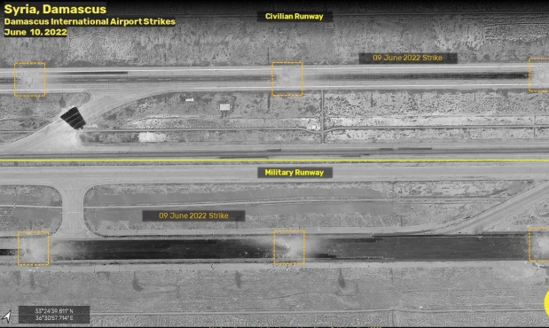 ويُذكر أن الصور الجوية لشركة الأقمار الاصطناعية التُقطت اليوم الجمعة، أي بعد الضربات الجويّة التي اتُهمت إسرائيل بالوقوف من خلفها، ويشار إلى أن هذه هي المرة الأولى التي تُعطّل فيها حركة الطيران من مطار دمشق الدولي بعد ضربات جويّة مُتهمة بتنفيذها إسرائيل.