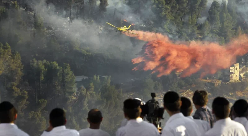 قالت صحيفة يديعوت أحرونوت أن حرائق الغابات غرب القدس التهمت 12 ألف دونم حتى الآن.