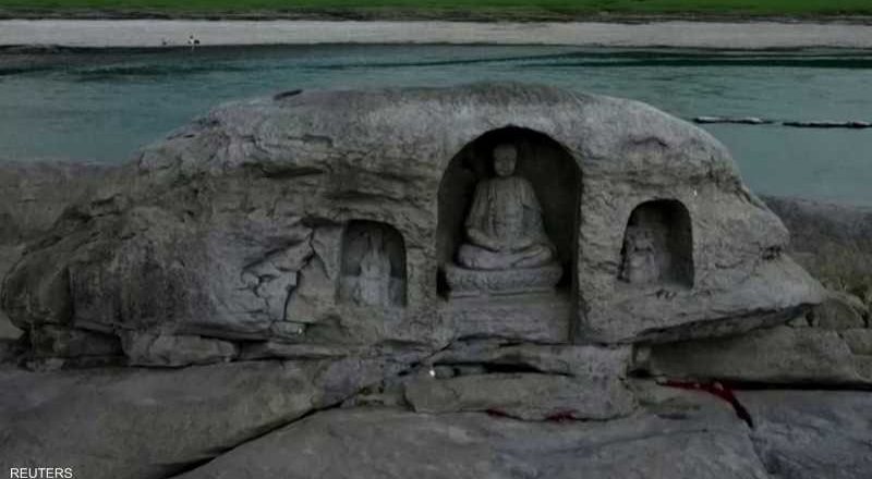 وجاء الاكتشاف بعد انخفاض منسوب المياه في نهر اليانغتسي بسرعة بسبب الجفاف وموجة الحر في منطقة جنوب غرب الصين.