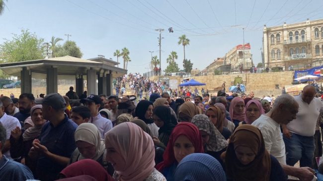 توافد  مئات الآلاف من المصلين الى المسجد الأقصى المبارك لأداء صلاة الجمعة الرابعة والأخيرة من شهر رمضان… وامتلأت شوارع مدينة القدس بالمصليت من أهالي الضفة الغربية والداخل الفلسطيني والمدينة.