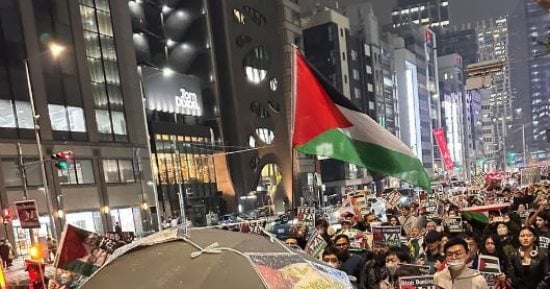 طوكيو: مئات اليابانيين يحتجون أمام السفارة الأمريكية تضامنا مع فلسطين