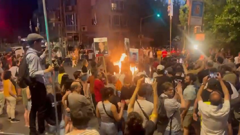 احتجت عائلات الأسرى الإسرائيليين مساء اليوم، أمام منزل رئيس الوزراء الاسرائيلي بنيامين نتنياهو في شارع غزة بالقدس، حاملين لافتات وسط هتافات وغضب كبير على الحكومة الاسرائيلية.