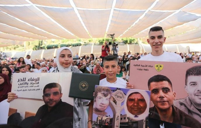 عائلة الأسير زكريا الزبيدي تتسلم شهادة الماجستير من جامعة بيرزيت نيابة عنه