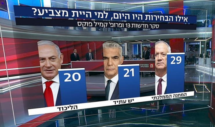 وفق نتائج استطلاع للرأي العام الإسرائيلي أجرته القناة 13 العبرية، ونشرت نتائجه مساء الأحد أظهرأنه لو أجريت الانتخابات الإسرائيلية اليوم لحصل المعسكر الوطني” برئاسة بني جنتس على (29) مقعداً، مقابل (20) مقعداً لحزب الليكود بدلاً من (32) مقعداً حالياً، حزب يش عتيد برئاسة لبيد (21) مقعدا، مما يعني أن حزب الليكود الذي يقود الحكومة الآن سيكون القوة الثالثة في الكنيست الإسرائيلي.