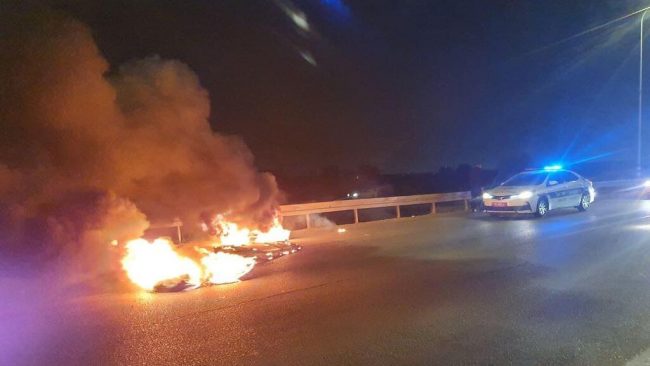 نابلس- مدار نيوز14-1-2022- كتب محمد أبو علان دراغــــــمة: مهمة الشرطة الإسرائيلية كانت الحفاظ على الطرق في الجنوب مفتوحة، وجعل السائقين يتحركون بحرية، صحيح الطرق بقيت مفتوجة لكن المركبات ليلية الخميس/الجمعة تعرضت للرشق في الحجارة على شارع 60 وشارع 80 وفي منطقة تل السبع، كما تم إشعال النار في مركبة، وتعرضت مركبة شرطة للرشق بالحجارة،أصيبت بأضرار وجرح شرطياً بجروح خفيفة.