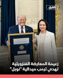 قبل الهدية بابتسامة: حائزة جائزة نوبل للسلام من فنزويلا تقدم الجائزة لترامب