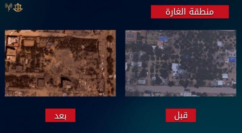 قبل وبعد.. الاحتلال ينشر صورتين لموقع غارة المواصي