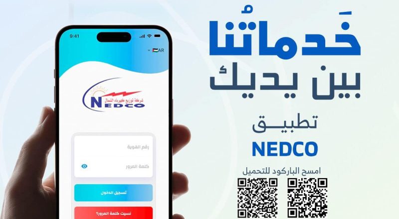 أطلقت شركة توزيع كهرباء الشمال رسمياً التطبيق الالكتروني الخاص بخدمة المشتركين NEDCO ) ) والذي يأتي ضمن رؤية الشركة الاستراتيجية والتطويرية نحوالتحول الرقمي ، وذلك بهدف تقديم أفضل الخدمات لمشتركيها والتسهيل عليهم ومواكبة التطور التكنولوجي .