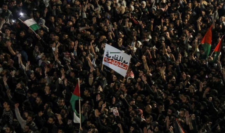 وأضافت أنّ التظاهرة، اليوم، والتي تحمل شعار “الأرض لنا والمقاومة خيارنا للتحرير”، توجه ثلاث رسائلٍ أساسية. الرسالة الأولى موجّهة إلى الداخل، بحيث طالب المتظاهرون بوقف دعم الحكومة الأردنية للاحتلال الإسرائيلي من خلال تصدير الخضار، والمشاركة في الجسر البري الذي يشكل شريان حياة للاحتلال في ظل الحصار المفروض على قطاع غزة، مطالبين بقطع كل المعاهدات مع الاحتلال، بما فيها معاهدة “وادي عربة”.